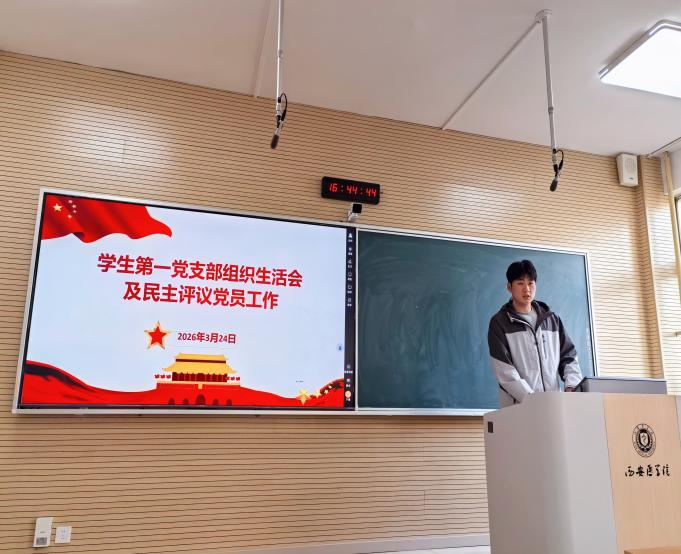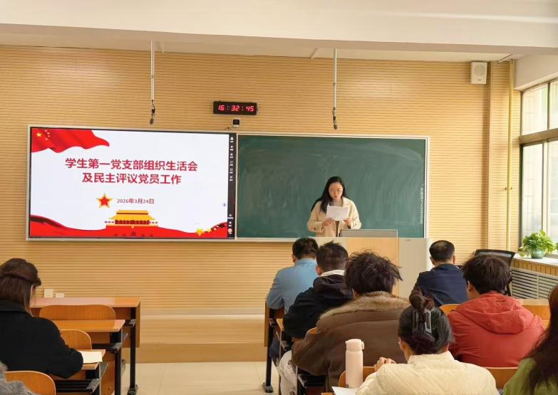 3月24日,在高新校区第六教室,学生第一党支部召开2025年度组织生活会暨民主评议党员大会,全体学生党员参会,学院党总支副书记周晓华、党总支纪检委员秦泗佳到会指导,学生第一党支部书记冯叶主持会议。