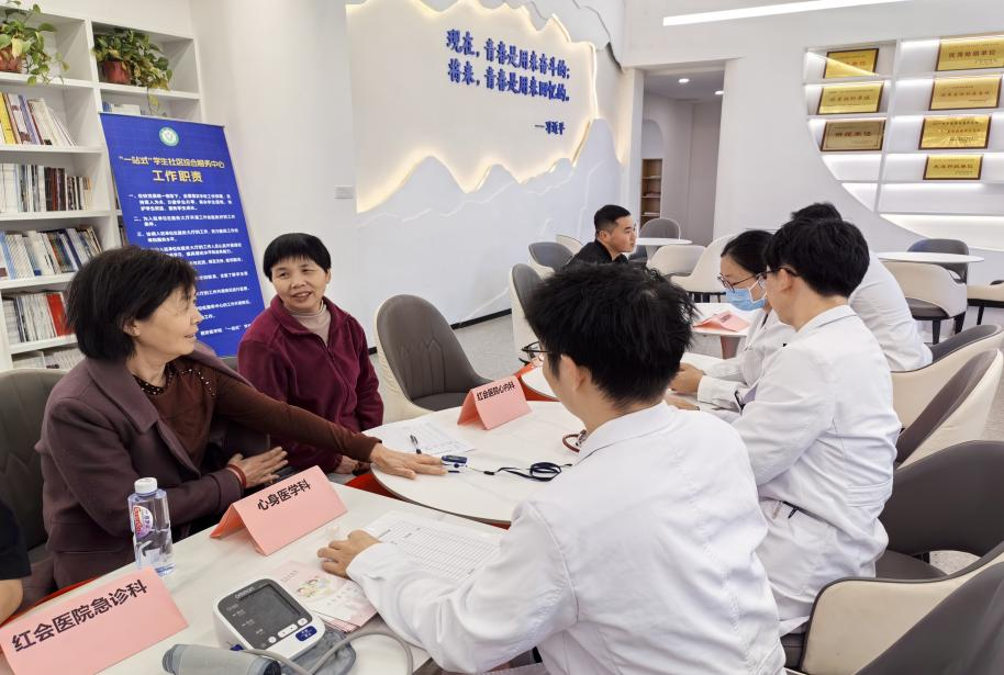 医护人员身着白大褂,耐心细致地为前来咨询的师生问诊查体。针对同学们普遍关注的口腔健康问题,口腔科专家从日常清洁到疾病预防逐一细致讲解;面对大家在工作、学习和生活中产生的心理压力,心身医学科专家认真倾听、悉心疏导,帮助大家以更积极的心态面对挑战。其他科室专家同步提供血压测量、健康咨询等多项服务。通过与专家面对面交流,师生们收获了实用的健康知识与暖心关怀。大家纷纷表示,在校内就能享受到三甲医院的专业诊疗服务,既便捷又贴心。