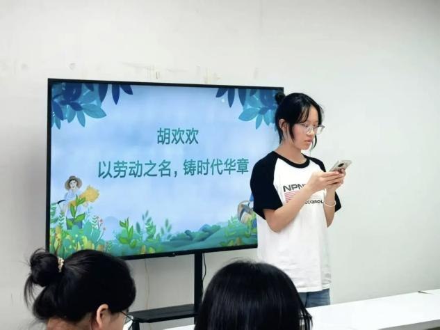 活动伊始,主持人王卓妙以激昂的开场白点明活动主题。她向同学们介绍了本次活动开展的目的意义和要求,同时强调在时代发展进程中无数劳动者于平凡岗位默默奉献,我们要用实际行动描绘出时代的壮丽画卷,歌颂劳动、热爱劳动。随后向大家介绍了参与本次演讲的人员。