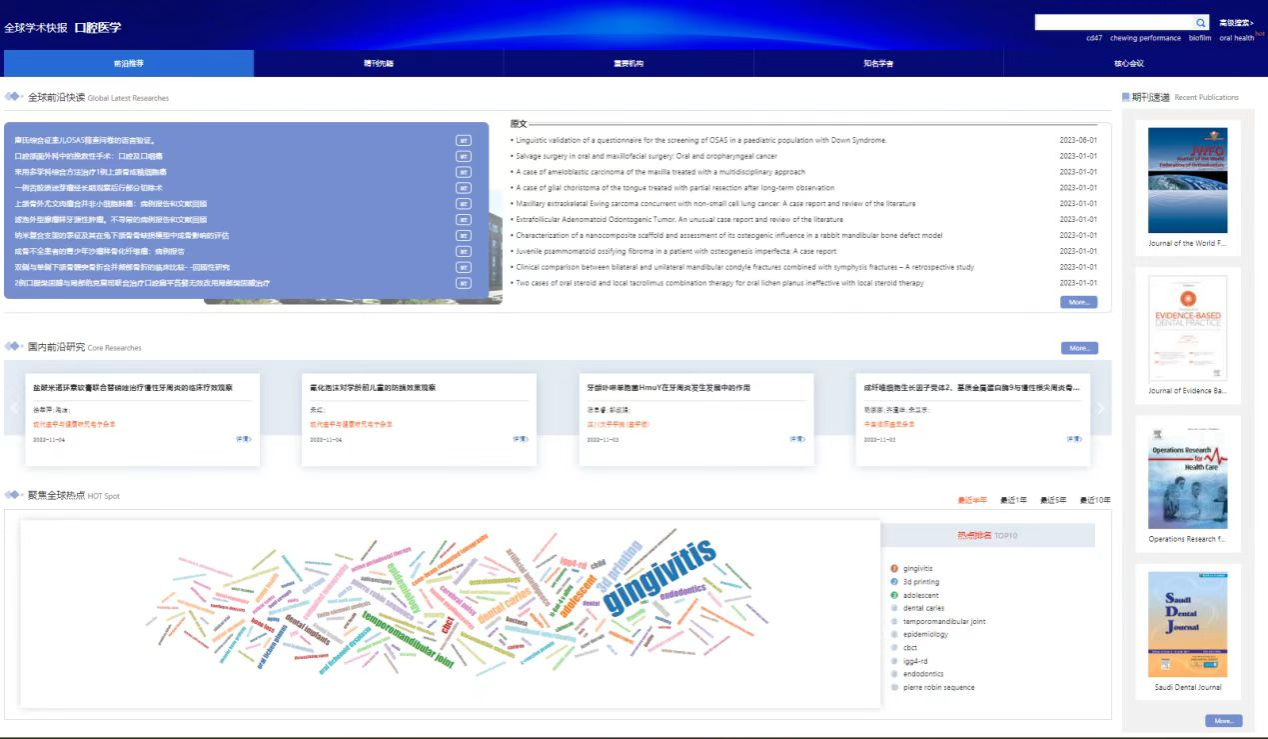 为了加强校级重点扶持学科“口腔临床医学”的建设工作,口腔医学院新上线了《全球学术快报(学科版)——口腔医学总库》。