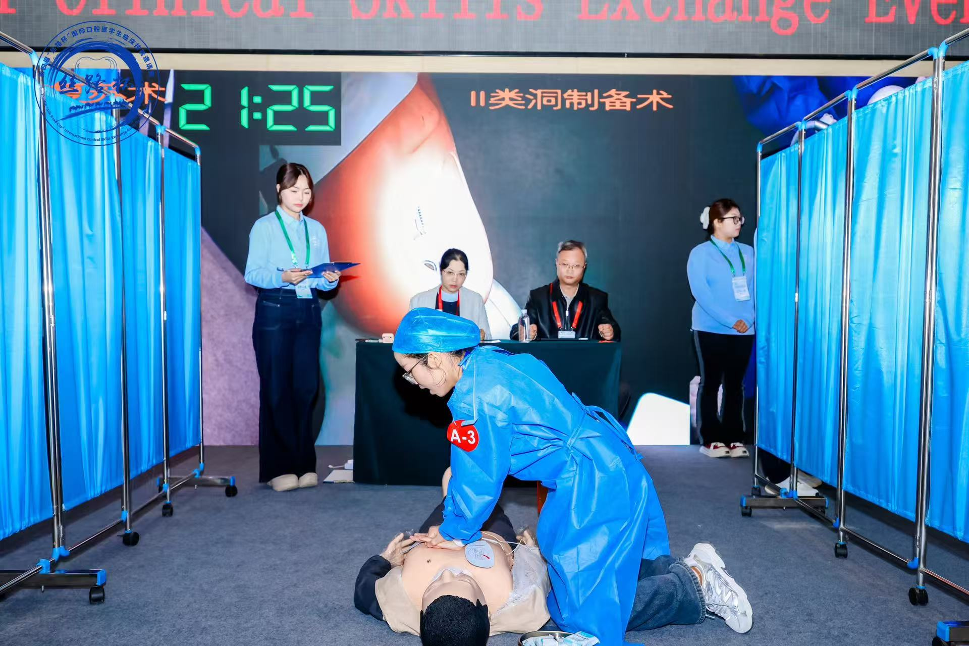 我校口腔医学院2021级本科生罗佳苗凭借扎实功底脱颖而出,斩获本科生组“精业奖”(二等奖),学院教师柴娟受邀担任赛事评委,彰显了我校口腔医学教育的综合实力。 赛事以“精湛、精业、精益”为核心奖项设置,分为本科生组与研究生组,其中本科生组需完成心肺复苏术(含AED)、全瓷冠牙体预备(左侧上颌中切牙)、橡皮障下II类洞牙体形态预备(左侧下颌第一磨牙)及口内缝合术四项考核,对选手的专业技能与临场应变能力提出极高要求。自赛事启动以来,口腔医学院高度重视,迅速成立专项工作组统筹备赛事宜,最终选定罗佳苗代表学院参赛,并组建由柴娟、方远鹏、王峰三位资深教师构成的指导团队,从专业知识梳理、临床实操强化到心态调适指导,构建全方位系统化备赛体系,助力选手精准把握考核要点。经过多轮激烈角逐,罗佳苗在高强度比拼中展现出稳定的临场发挥与扎实的专业素养,成功为学院赢得荣誉。与此同时,学院柴娟老师受邀担任研究生组“下颌阻生齿拔除术(右侧下颌阻生智齿,含局部麻醉、口内缝合术)”项目评委,以专业视角为赛事的公平公正开展提供保障,充分体现了我校在口腔医学领域的教学影响力。