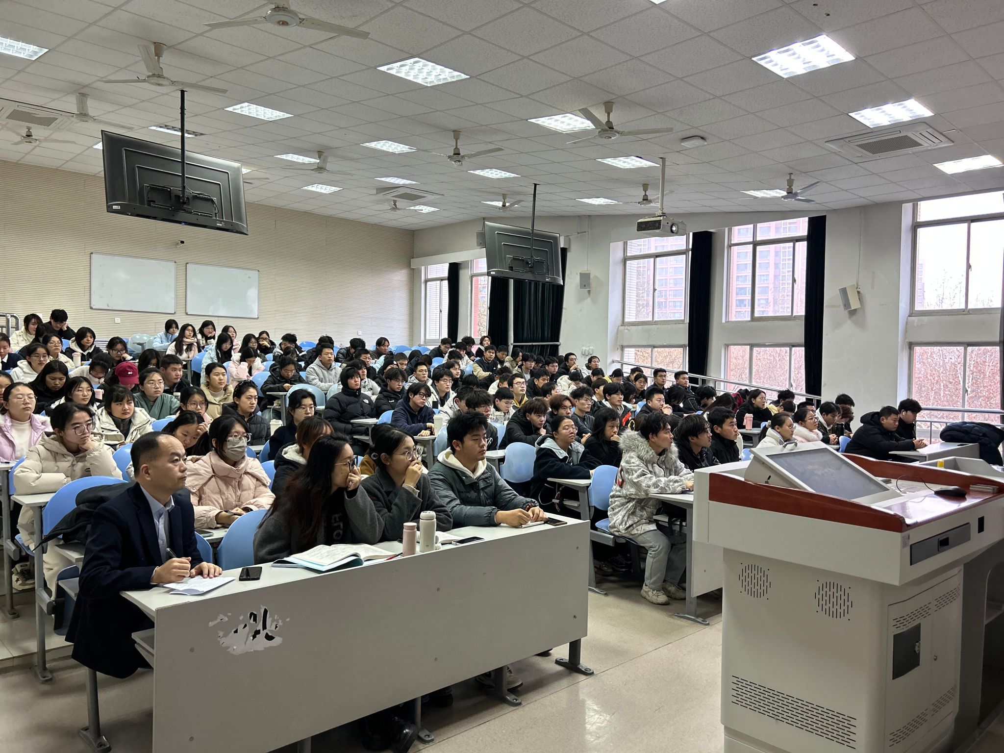 12月16日,校党委副书记姚文柱走进联系班级,在未央校区教学楼206教室,与同学们进行了一场温度与深度相融合的交流活动。口腔医学专业25级辅导员孟骊超及25级新生共计130余人参加活动。口腔医学院党总支副书记周晓华主持活动。