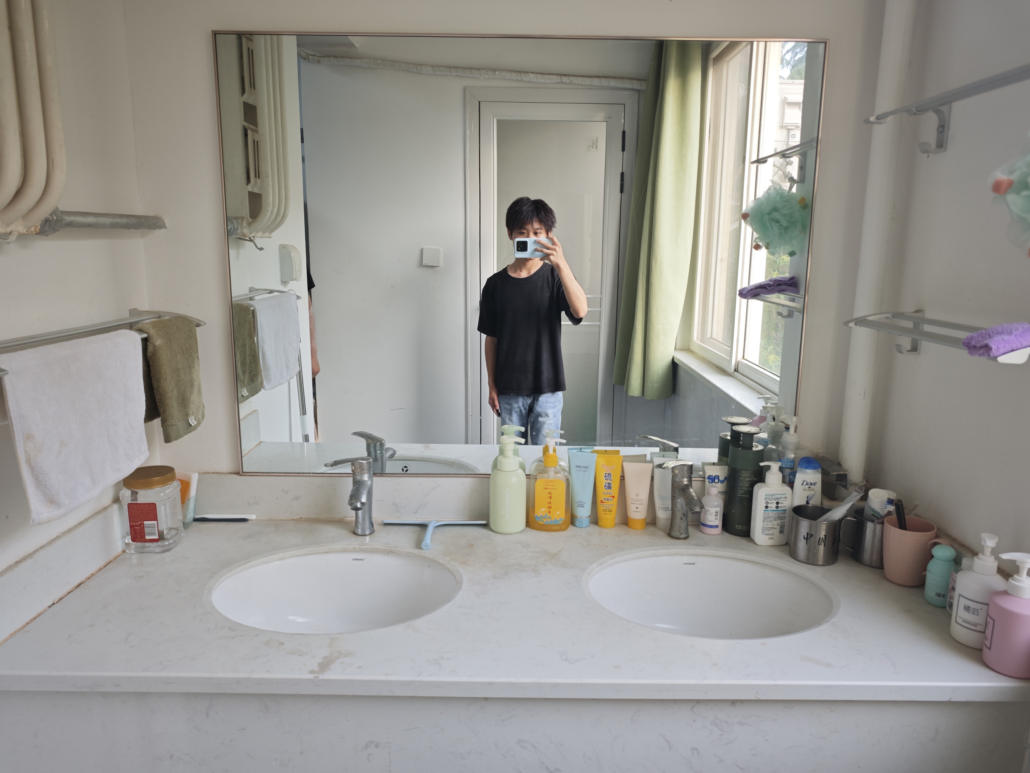 「方寸之间的劳动修行」“在部队时,班长常说‘洗漱台干净了,心就静了’。”6号公寓南311宿舍秦卓汉边示范边说:“擦台面要顺着一个方向擦,就像擦枪一样得仔细,犄角旮旯都不能留灰。”每天早晚洗漱时,大伙儿都会自觉把物品归类,台面擦拭干净。