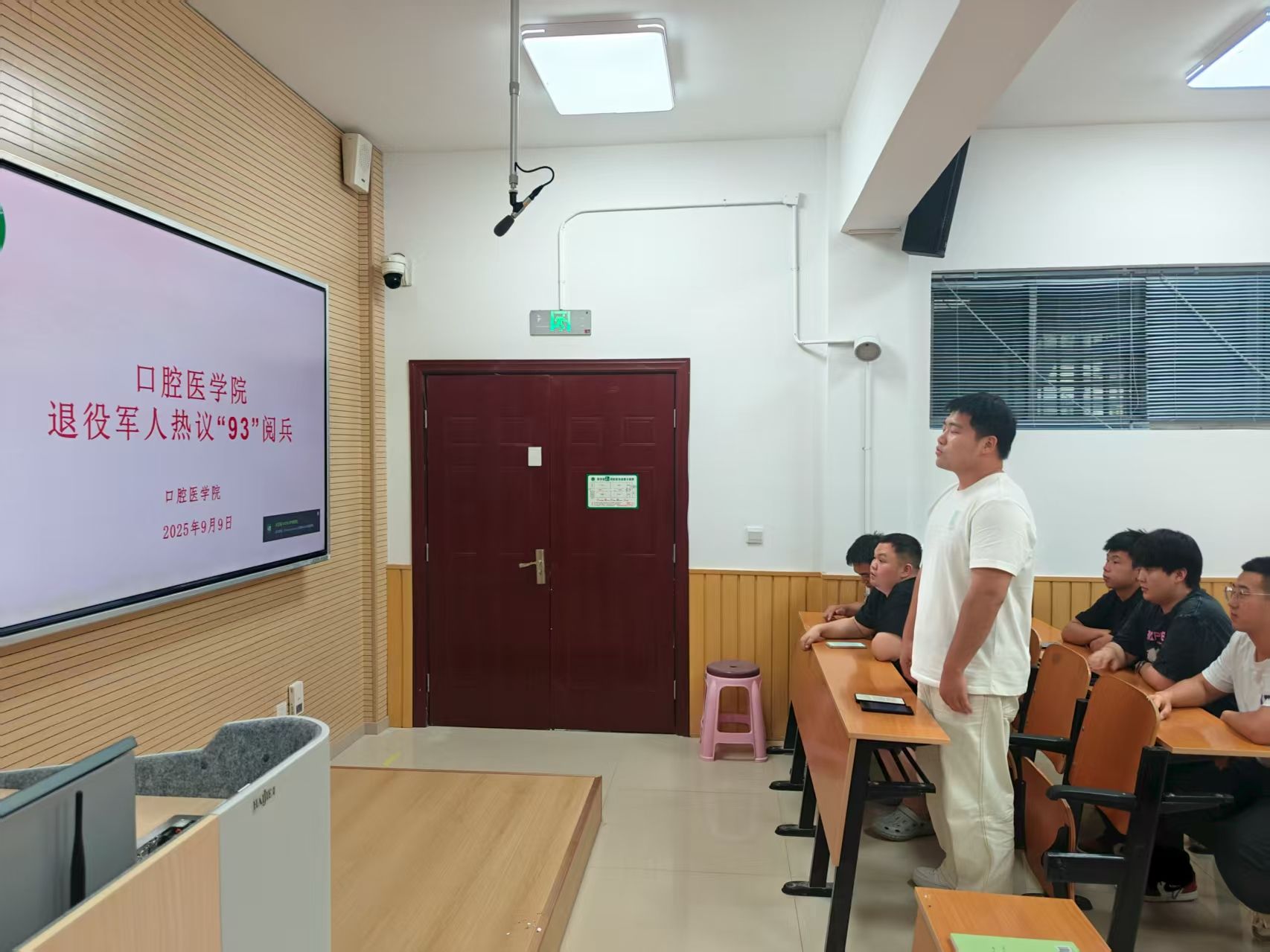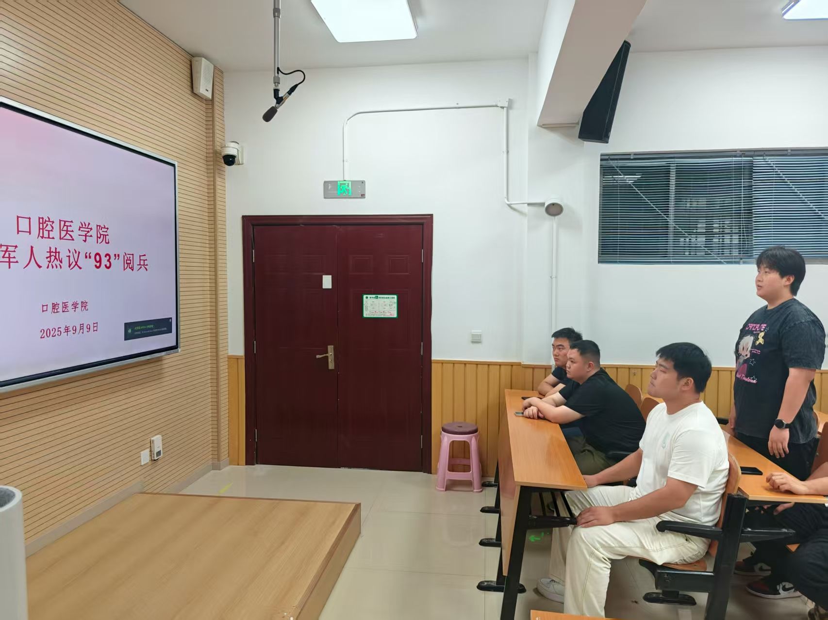 9月9日,在高新校区第五教室,学院10余名退伍大学生分享交流九三阅兵感悟。今年9月3日上午,纪念中国人民抗日战争暨世界反法西斯战争胜利80周年大会在北京天安门广场隆重举行。退伍学子们结合军旅生涯与医学生身份,畅谈阅兵记忆与成长感悟。